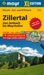 Składana, wodoodporna, dwustronna mapa turystyczna doliny Zillertall od Jenbach do Mayrhofen w skali 1:25 000 wydawnictwa Kompass.