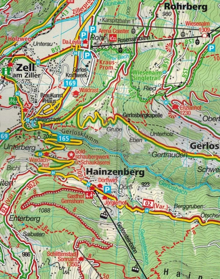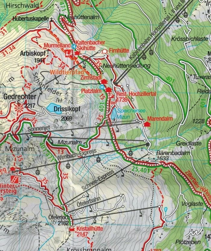 Mapa obejmuje część Alp Kitzbühelskich (Kitzbüheler Alpen), Zillertalskich (Zillertaler Alpen) oraz Tuxer Alpen.