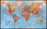 Świat 1:30 000 000. Mapa fizyczna świata w ramie drewnianej. MI