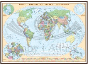 Świat 1:25 000 000. Mapa polityczna w ramie drewnianej. Wyd. 2025