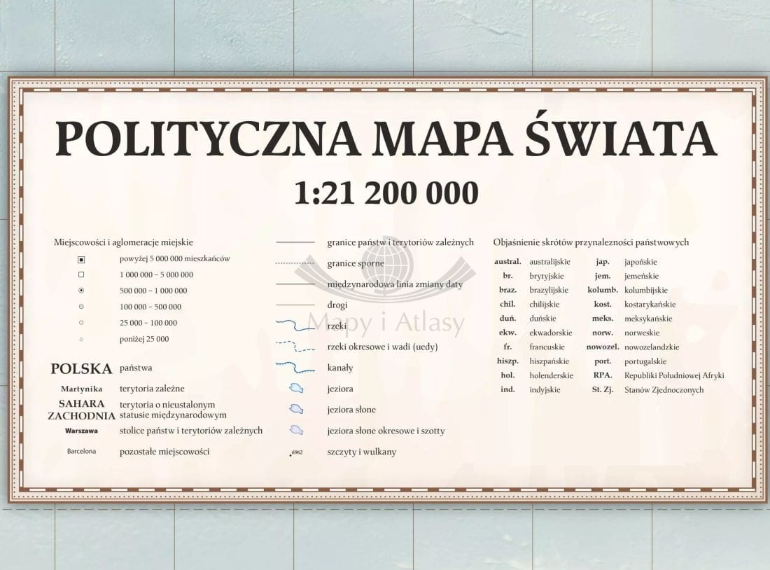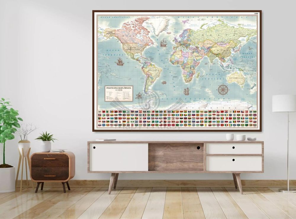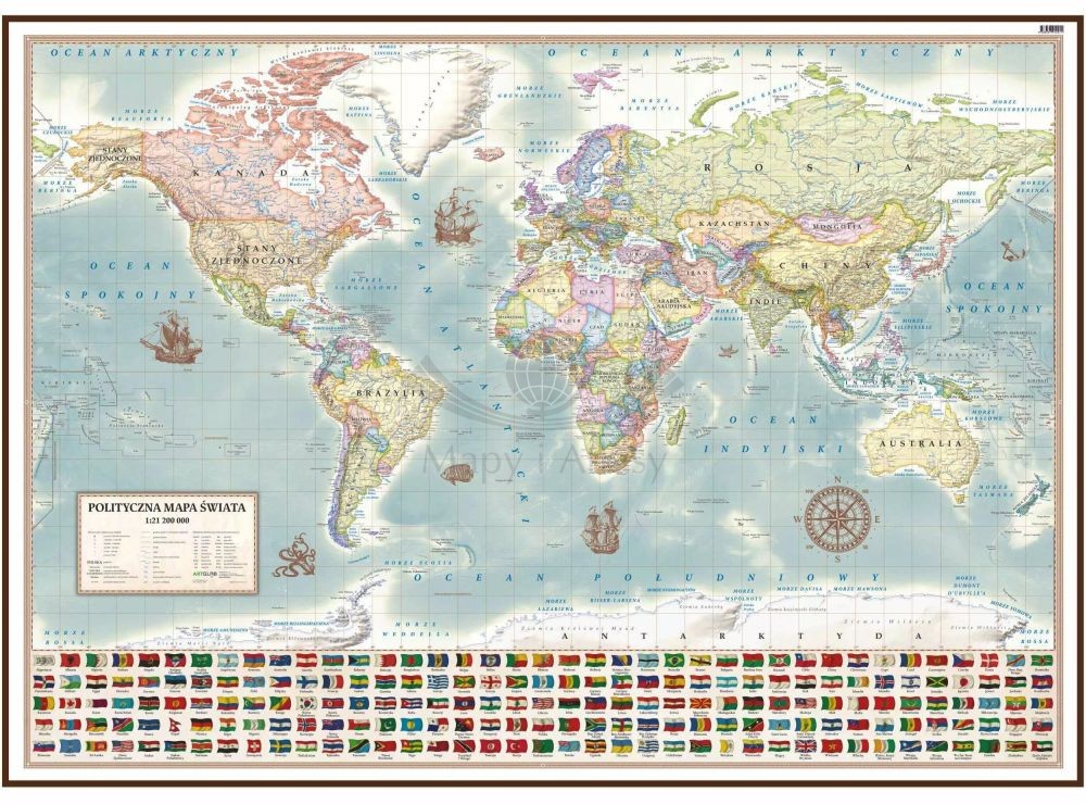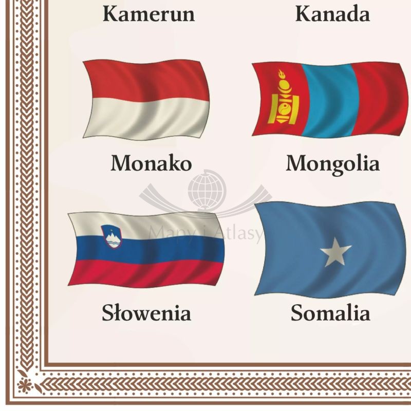 Dodatkowo w dolnej części mapy umieszczono flagi wszystkich państw świata, dzięki czemu stanowi ona bogate źródło wiedzy.