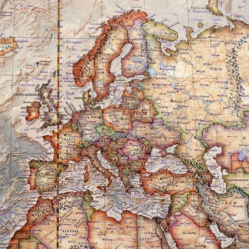 Mapa gotowa do zawieszenia na ścianie jako tablica. Na czas transportu mapa jest zabezpieczana narożnikami z pianki i opakowaniem kartonowym.