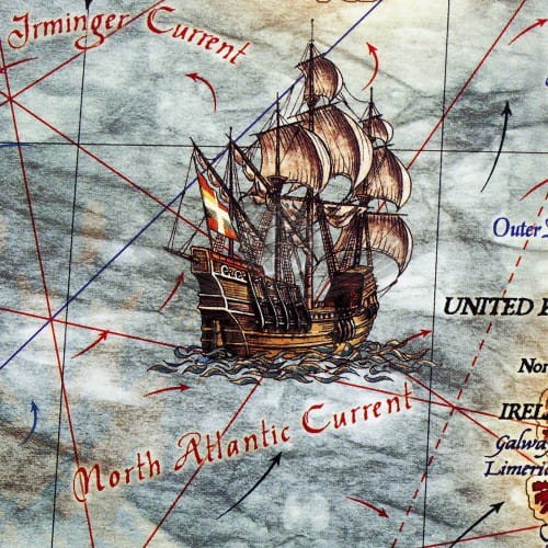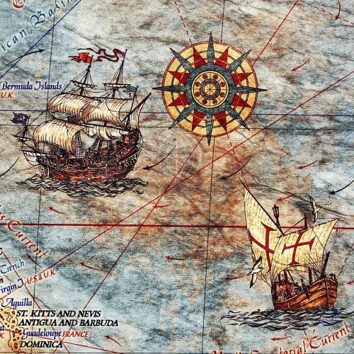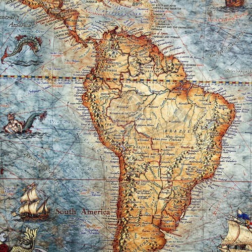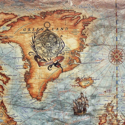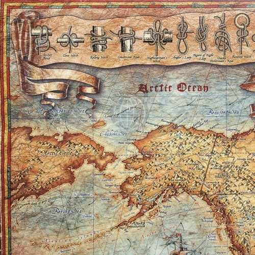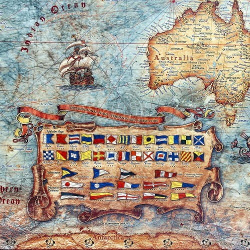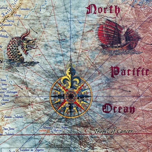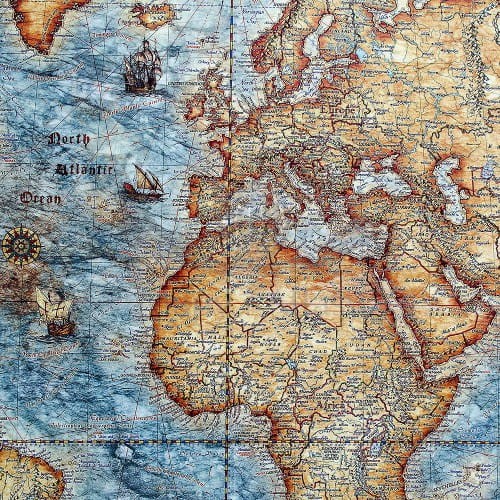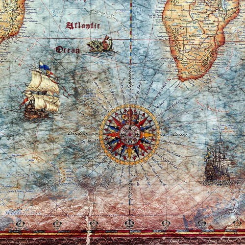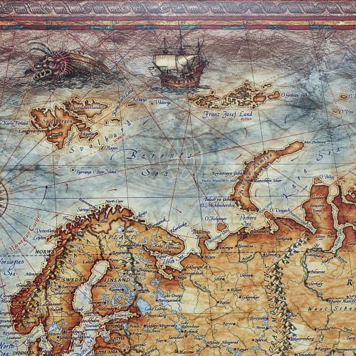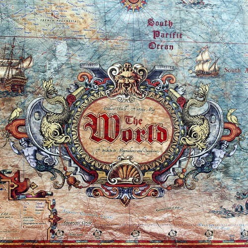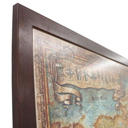 Mapa stylizowana "antyczna" Świata z węzłami w skali 1:33 000 000 w ramie drewnianej, wydawnictwa Ray&Co.