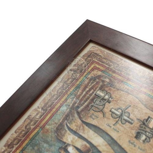 Rama drewniana ciemnobrązowa lub czarna, o szerokości od frontu 22 mm i takiej samej głębokości.