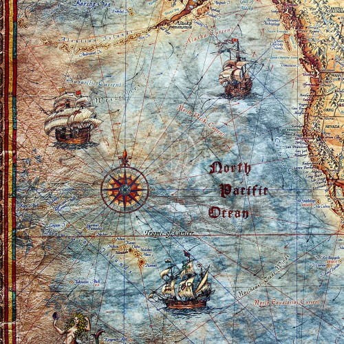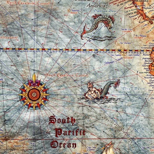 Mapa stylizowana "antyczna" Świata z węzłami w skali 1:33 000 000 w ramie drewnianej, wydawnictwa Ray&Co. Cechy mapy: aktualny podział polityczny świata, eleganckie detale, stylowa kolorystyka...