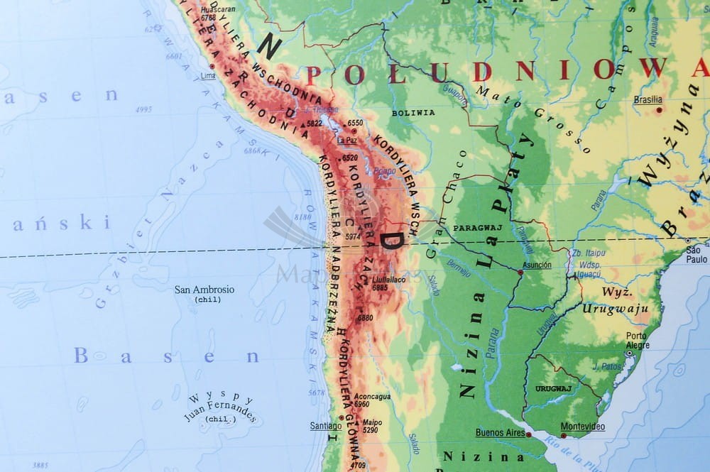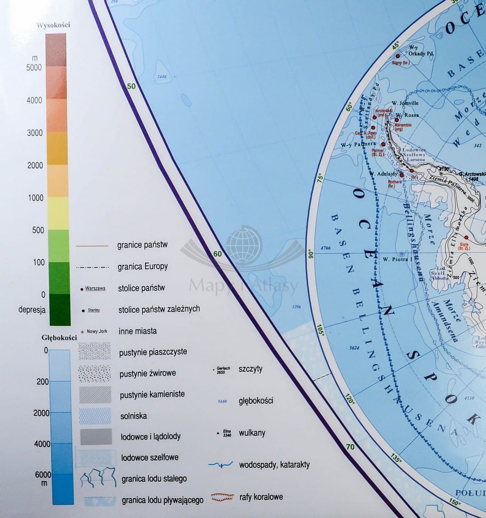 Mapa fizyczna świata w skali 1:28 000 000 w ramie wydawnictwa Piętka.