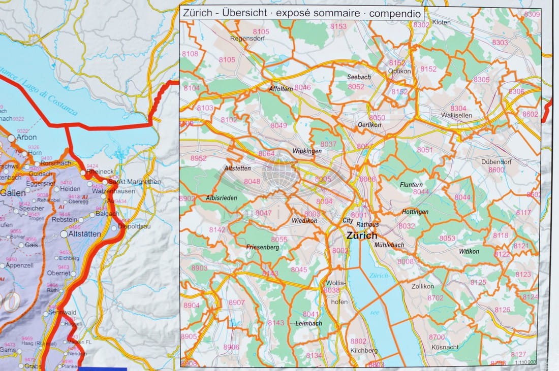 - mapę Zurychu (w prawym górnym rogu),