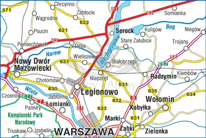 Mapa "Jezioro Zegrzyńskie i okolice" - przedstawia fragment terenu bezpośrednio przyległego do tego jeziora. Z administracyjnego punktu widzenia jest to Powiat Legionowski wraz z najbliższym otoczeniem...