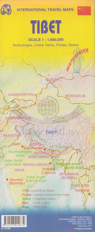 Tybet 1:1 680 000. Himalaje. Chiny, Nepal, Bhutan, Indie. Wodoodporna mapa samochodowo-turystyczna. ITMB