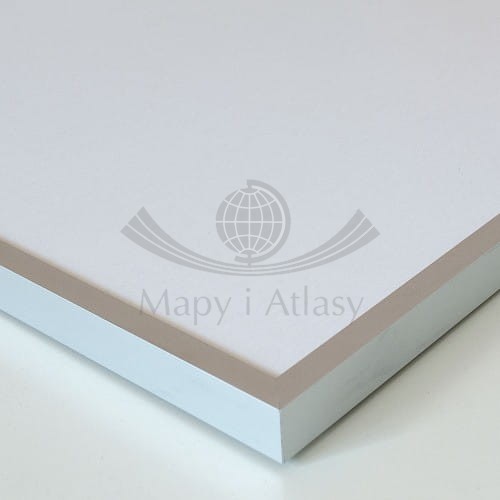 Mapa gotowa do zawieszenia na ścianie jako tablica. Na czas transportu mapa jest zabezpieczana narożnikami z pianki i opakowaniem kartonowym.