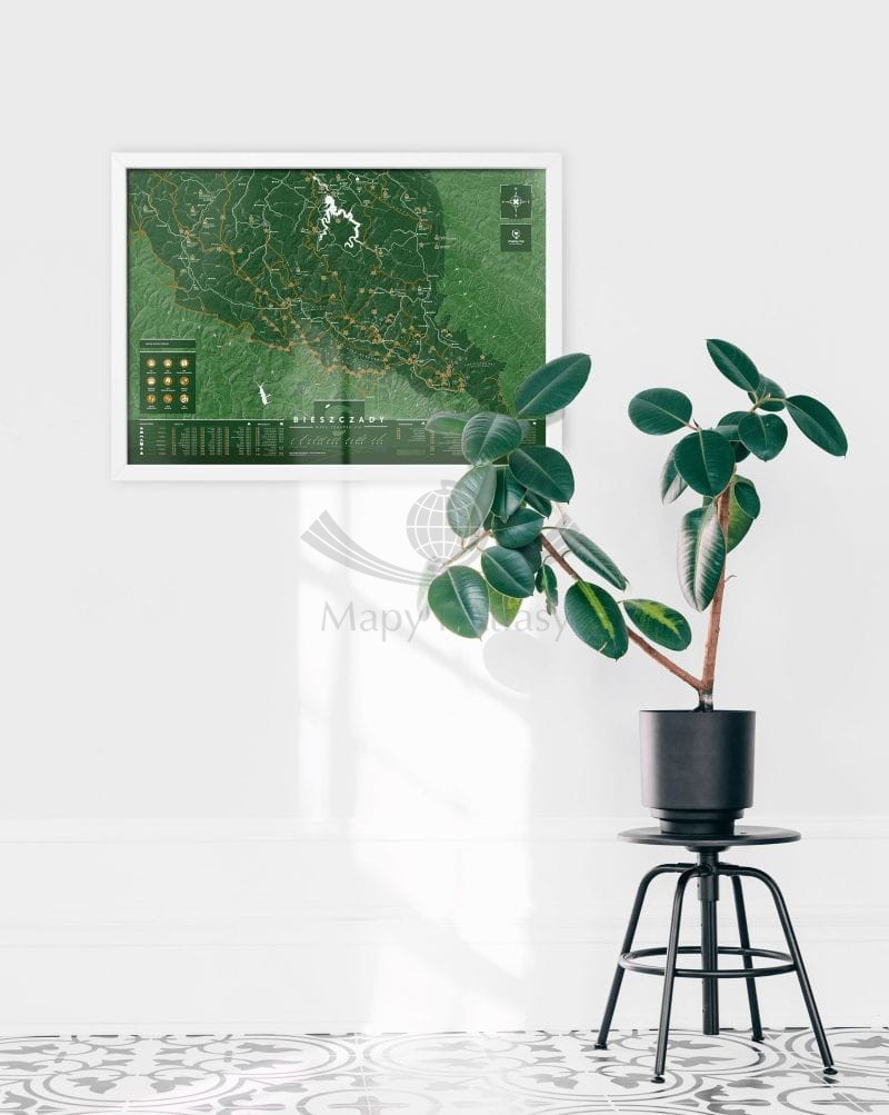 Mapa Zdrapka VIP Bieszczady w wersji w ramie.