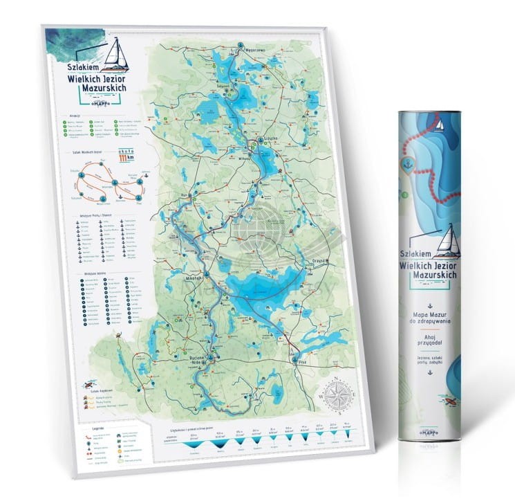 Mapa zdrapka "Szlakiem Wielkich Jezior Mazurskich" to zapis Twoich wakacyjnych wojaży po najpiękniejszych zakątkach Krainy Wielkich Jezior Mazurskich- od Węgorzewa aż za Ruciane-Nida...