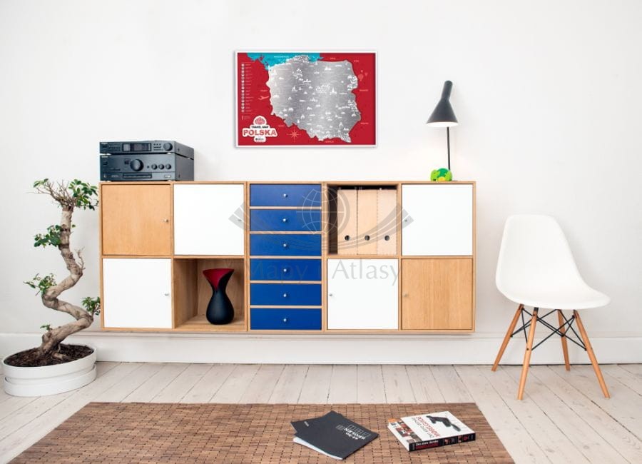 Biało-czerwone barwy oraz nowoczesny design sprawiają, że mapa jest również niepowtarzalną ozdobą wnętrza. Jest wspaniałym upominkiem dla dzieci oraz dla każdego, kto ceni odkrywanie własnego kraju. Sprawdzi się także jako oryginalna pamiątka z Polski.