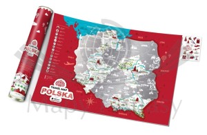 Mapa została pokryta specjalną srebrną powłoką do zdrapywania. Możesz z łatwością zaznaczyć miejsca i regiony, które odwiedziłeś. Po prostu użyj dołączonej kostki, aby usunąć srebrną warstwę i odkryj miejsca, w których już byłeś tworząc niepowtarzalny zapis historii swoich podróży po Polsce.