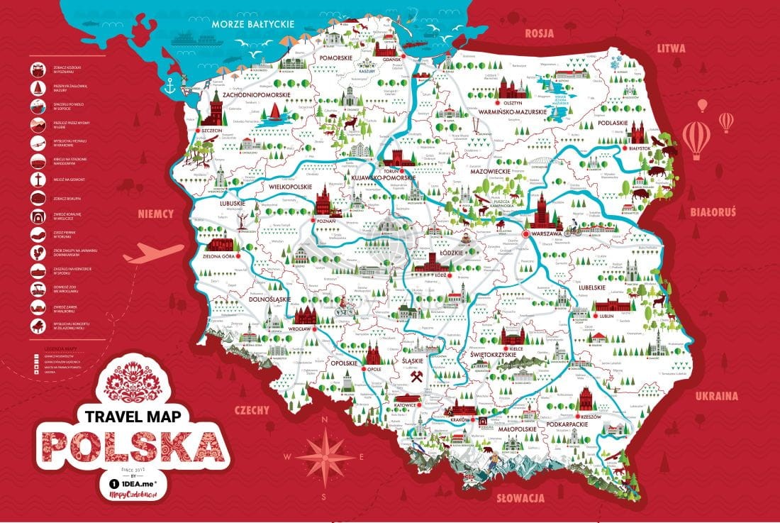 Biało-czerwone barwy oraz nowoczesny design sprawiają, że mapa jest również niepowtarzalną ozdobą wnętrza. Jest wspaniałym upominkiem dla dzieci oraz dla każdego, kto ceni odkrywanie własnego kraju. Sprawdzi się także jako oryginalna pamiątka z Polski.