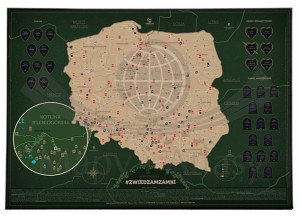 Ponadto u doły arkusza zamieszczono listę wszystkich zaznaczonych na mapie obiektów z podziałem na województwa.