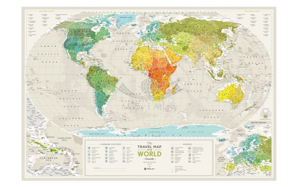 Travel Map™ Geography World zawiera mnóstwo małych wysepek oraz krajów i miast. Unikatowy wygląd nadaje jej złota warstwa do zdrapywania nałożona na klasyczny i elegancki projekt mapy. Możesz z łatwością zaznaczyć państwa, które odwiedziłeś.