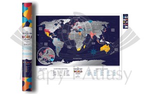 Travel Map™ Holiday World jest bardzo kolorową, osobistą mapą świata stworzoną specjalnie dla podróżników. Została pokryta specjalną srebrną powłoką do zdrapywania. Możesz z łatwością zaznaczyć państwa które odwiedziłeś i wakacyjne szaleństwa które zrealizowałeś.