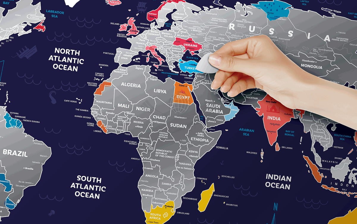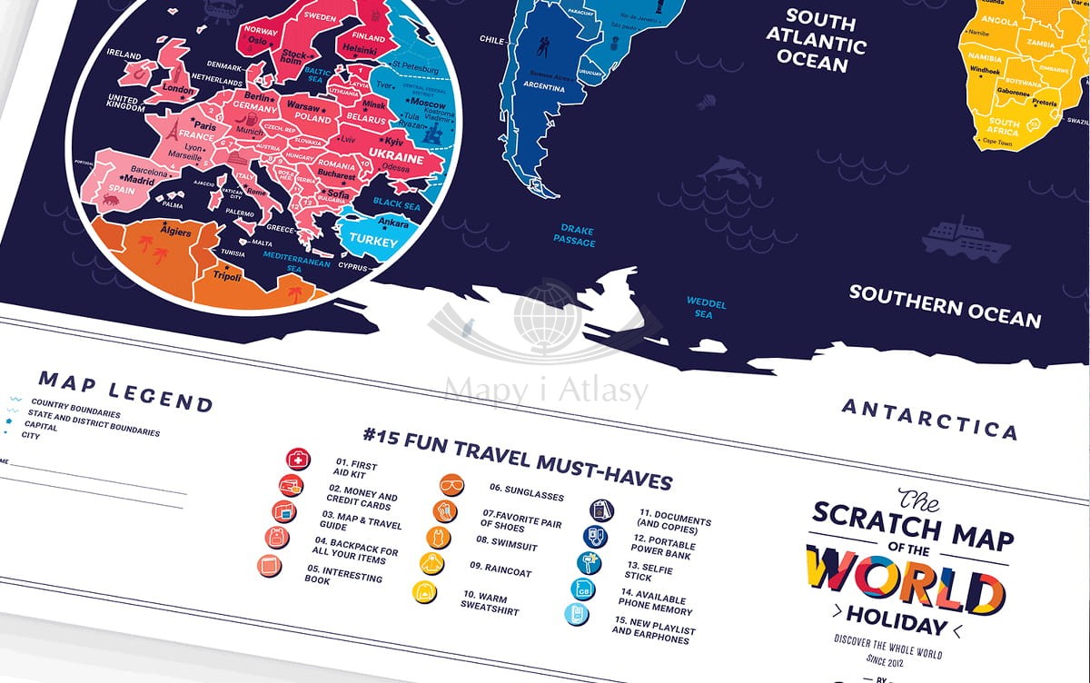 -Zdrapuj kraje które odwiedziłeś podczas wakacji i rysuj markerem kolejne plany.