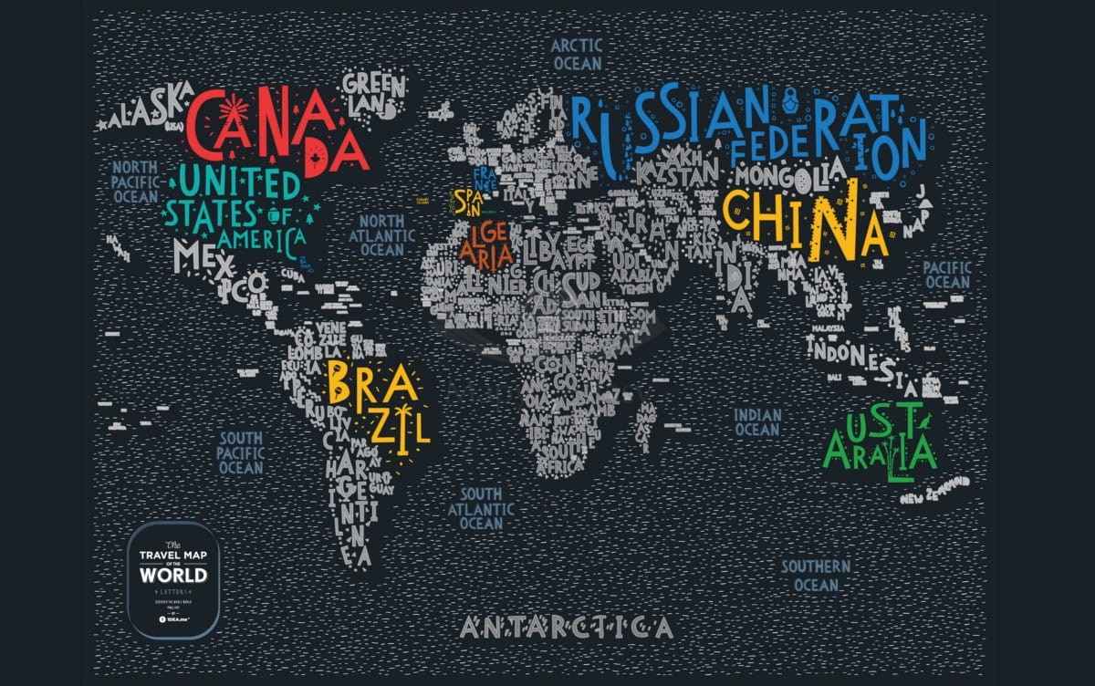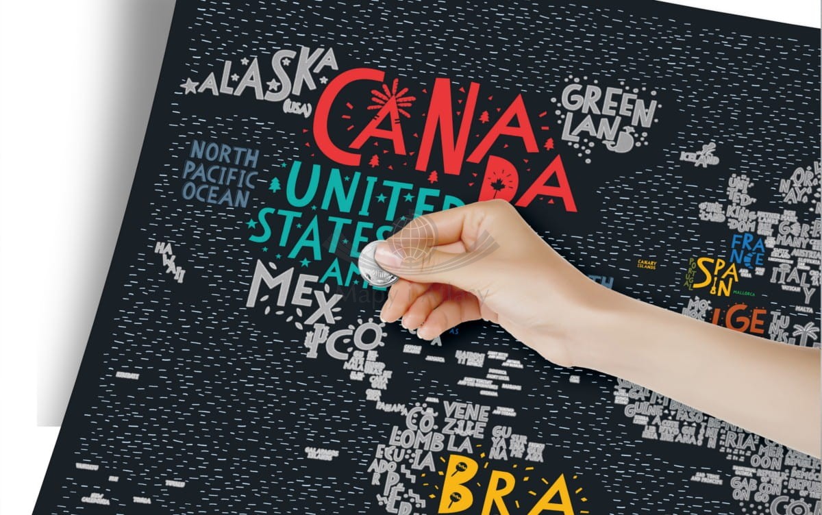 Travel Map Letters World to designerska mapa do zdrapywania, która tworzy historię podróży poprzez usuwanie srebrnej warstwy z krajów które już odwiedziłeś...