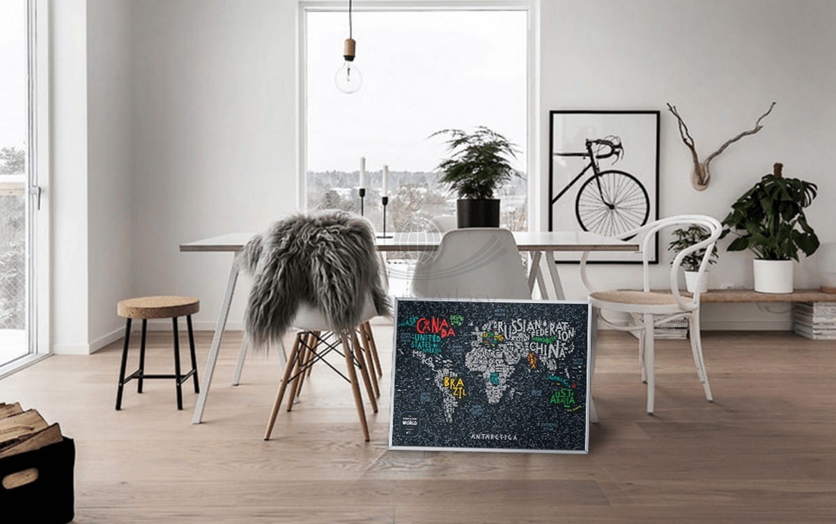 Travel Map Letters World to designerska mapa do zdrapywania, która tworzy historię podróży poprzez usuwanie srebrnej warstwy z krajów które już odwiedziłeś. Każdy obszar na mapie jest oznaczony poprzez litery układające się w nazwy poszczególnych krajów. Mapa Travel Map™ Letters World jest oryginalną dekoracją wnętrz dla osób interesujących się sztuką, designem i zwracających uwagę na wygląd miejsca w którym spędzają czas. Świetnie nadaje się do sypialni, pokoju dziennego, ale również jako ozdoba nowoczesnego biura. Podróżuj i zdrapuj srebrną warstwę z miejsc które już odwiedziłeś, a mapa stanie się bardziej kolorowa i interesująca.