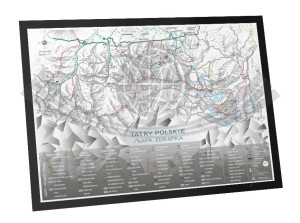 Mapa zdrapka "Tatry Polskie" w czarnej ramie aluminiowej.