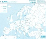 Bloczek z mapami konturowymi Europy do ćwiczeń. Mapy w zestawie: Podział polityczny, Hipsometria, Krainy geograficzne, Wody powierzchniowe...
