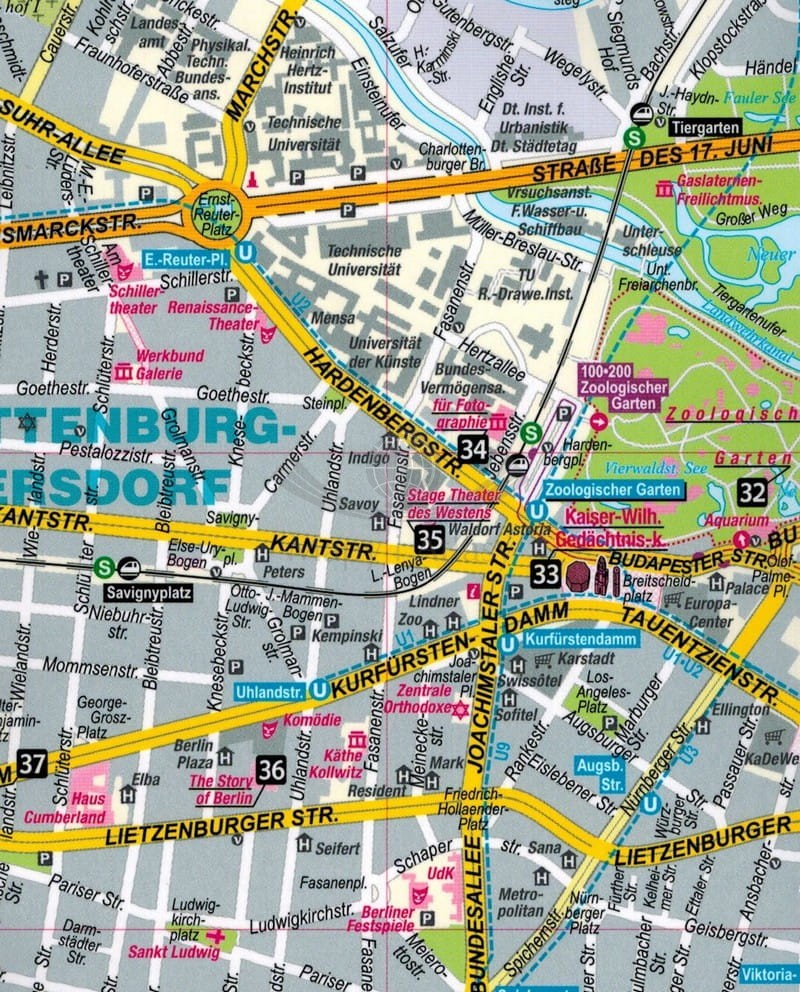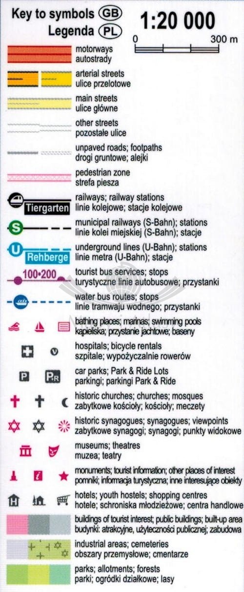 Laminowany, składany plan miasta Berlina w skali 1:20 000 wraz z miniprzewodnikiem wydawnictwa Expressmap.