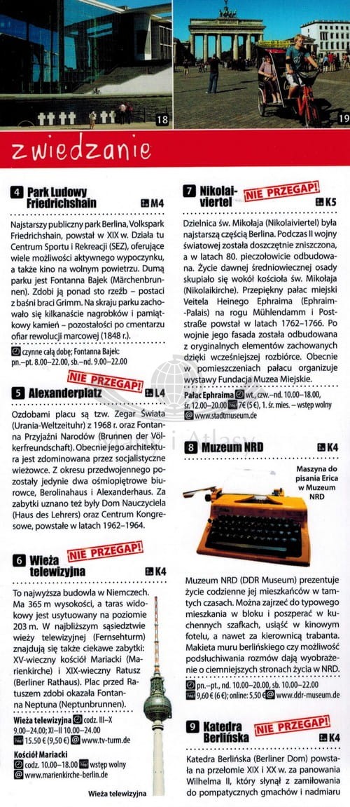 - opisy i adresy kilkudziesięciu najciekawszych miejsc wartych odwiedzenia (wszystkie opisy ponumerowane, a numery zaznaczone na mapie),