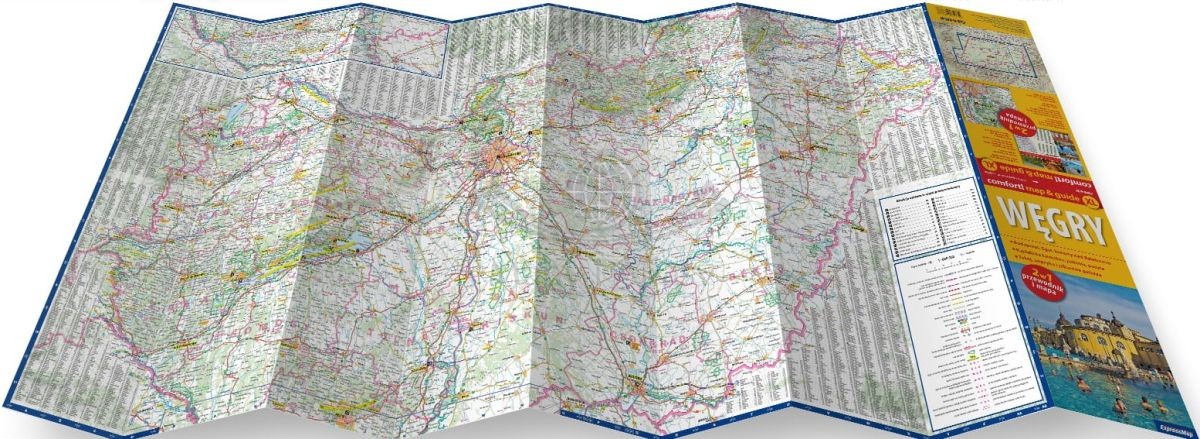 Składana, laminowana mapa samochodowo-turystyczna Węgier w skali 1:600 000 z miniprzewodnikiem wydawnictwa ExpressMap.