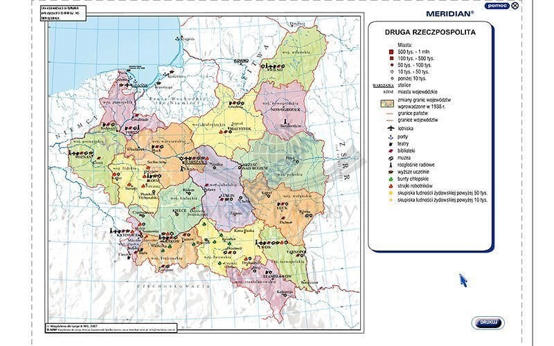 Opcja drukowania umożliwia wydruk mapy o wybranym obszarze i zakresie treściowym. Atlas cechuje się prostą, intuicyjną obsługą.