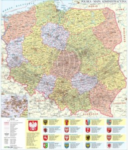 Nakładka magnetyczna na tablice z administracyjną mapą Polski.