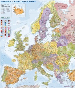 Europa 1:3 600 000. Naklejka, mapa ścienna. Kody pocztowe