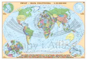 Świat 1:35 000 000. Naklejka, mapa ścienna polityczna.
