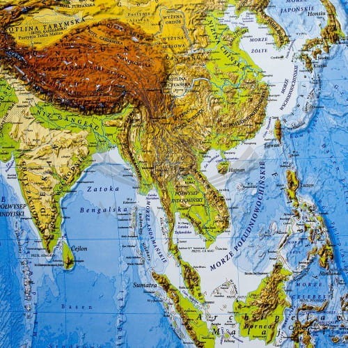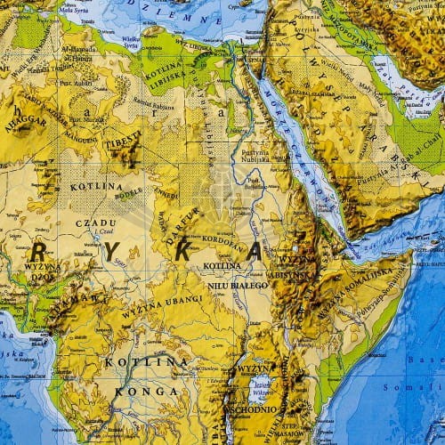 Mapa fizyczna zawiera najważniejsze dane geograficzne jak:
