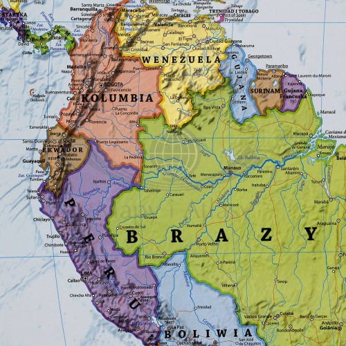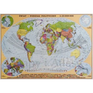 Świat 1:25 000 000. Naklejka, mapa ścienna polityczna