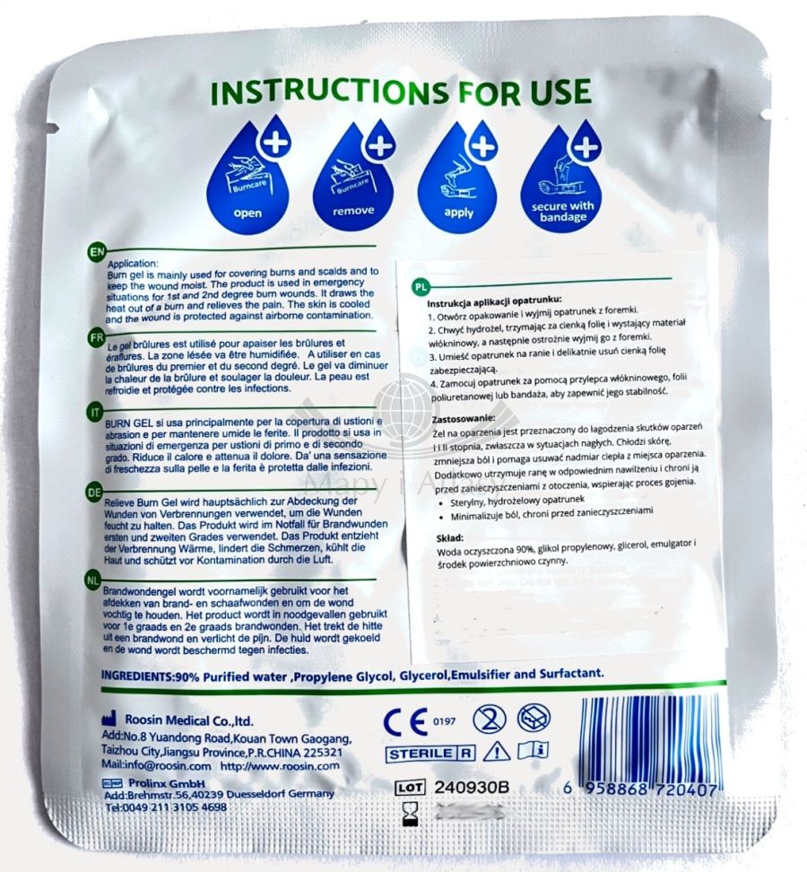 Opatrunek hydrożelowy Burncare o rozmiarze 30x40 cm (360 g hydrożelu) to innowacyjne rozwiązanie, które zapewnia szybką i skuteczną pomoc w przypadku poparzeń skóry.