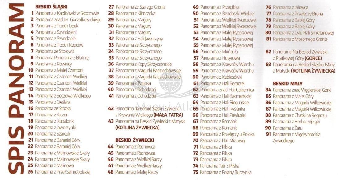91 panoram widokowych z opisami z Beskidu Śląskiego, Żywieckiego i Małego.