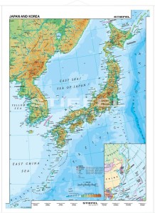 Ścienna mapa fizyczna Japonii i Korei wydawnictwa Stiefel.