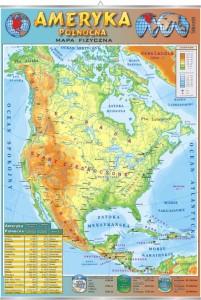 Ameryka Północna - mapa fizyczna. Plansza edukacyjna