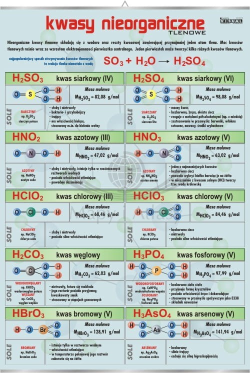Tlenowe kwasy nieorganiczne. Plansza edukacyjna