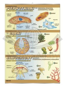 Pierwotniaki, gąbki, jamochłony – budowa anatomiczna. Plansza edukacyjna