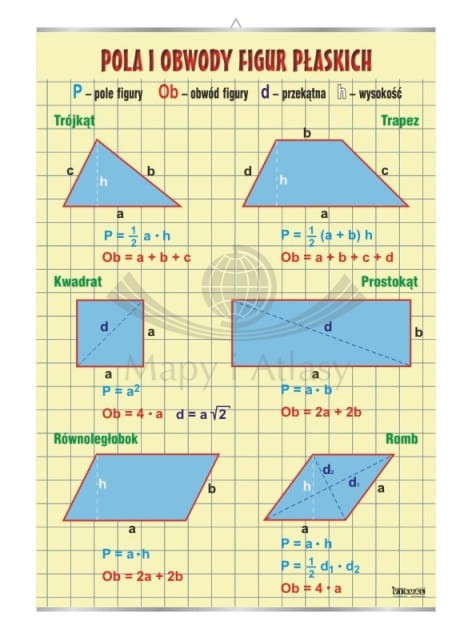 Pola i obwody figur płaskich. Plansza edukacyjna