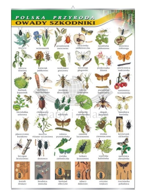 Polska przyroda. Owady szkodniki. Plansza edukacyjna
