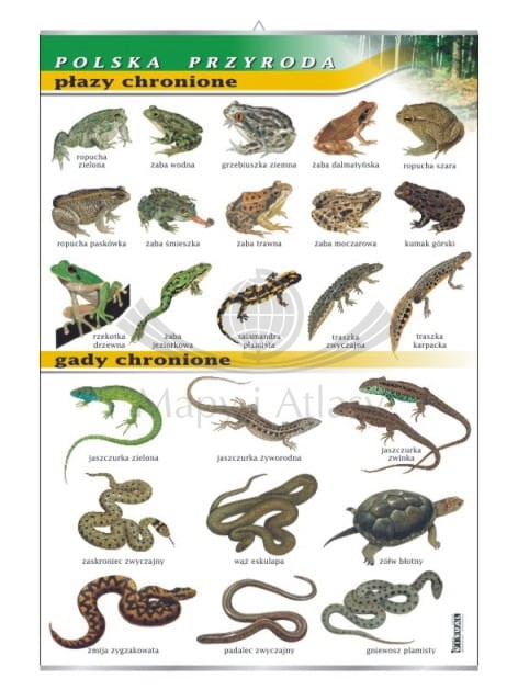 Polska przyroda. Płazy i gady chronione. Plansza edukacyjna