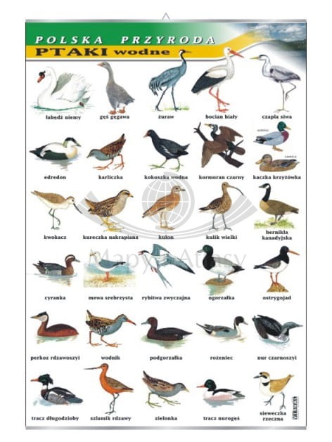 Polska przyroda. Ptaki wodne. Plansza edukacyjna