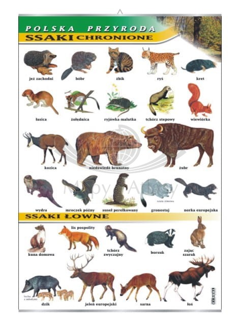 Polska przyroda. Ssaki chronione i łowne. Plansza edukacyjna