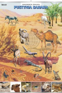 Plansza edukacyjna przedstawiająca zwierzęta występujące na Saharze.