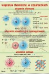 Plansza edukacyjna przedstawiająca rodzaje wiązań chemicznych w cząsteczkach (wiązanie atomowe, wiązanie kowalencyjne spolaryzowane, wiązanie jonowe).