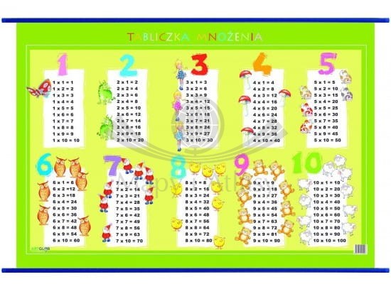 Plansza edukacyjna o wymiarze 100 x 70 cm - tabliczka mnożenia do ćwiczeń to niezbędnik każdego ucznia. W łatwy sposób pomaga w nauce. W kolorowy i zachęcający sposób przedstawia poszczególne działania matematyczne.